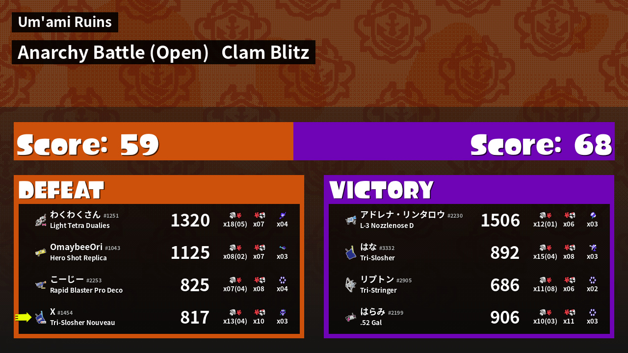 | Mode | Clam Blitz - Anarchy Battle (Open) | ||