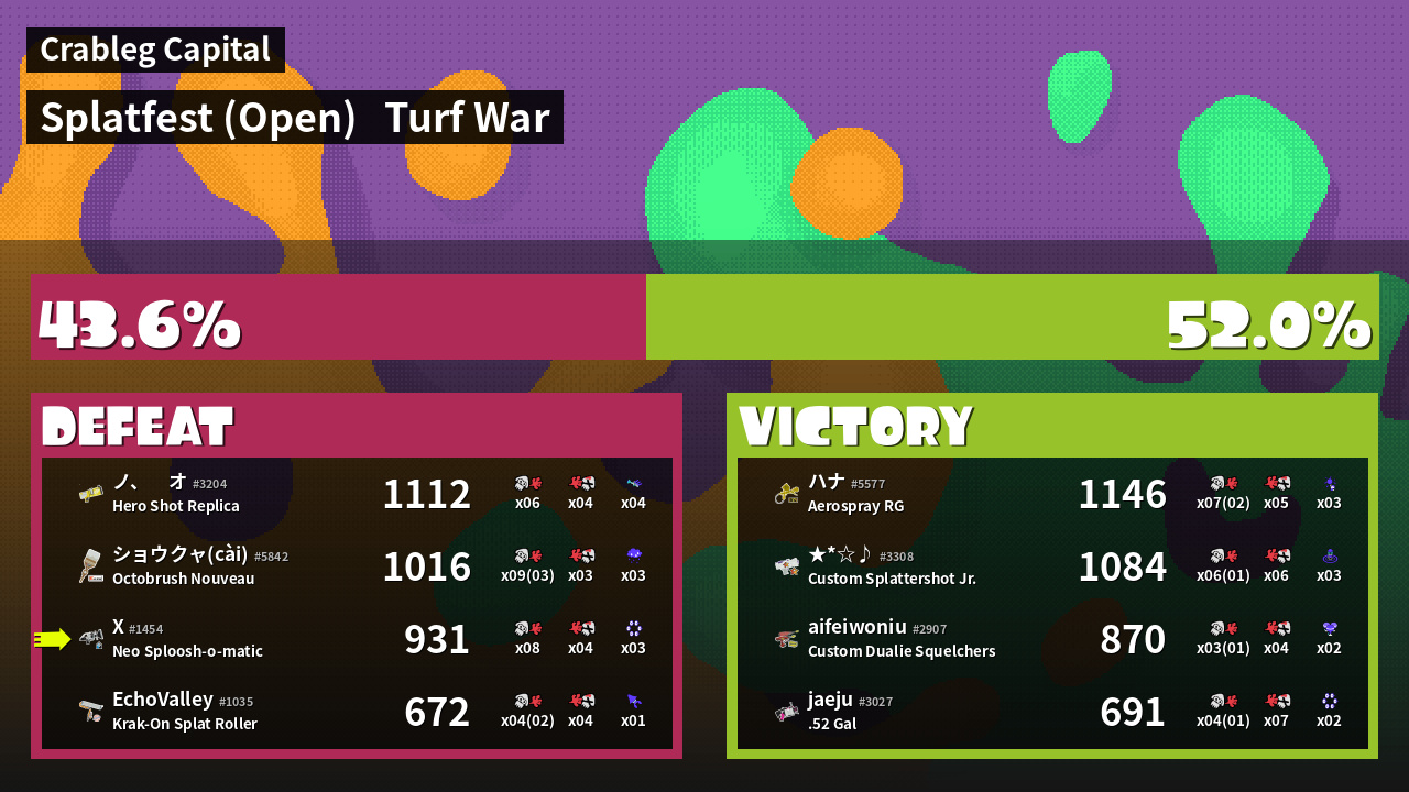 | Mode | Turf War - Splatfest (Open) | ||