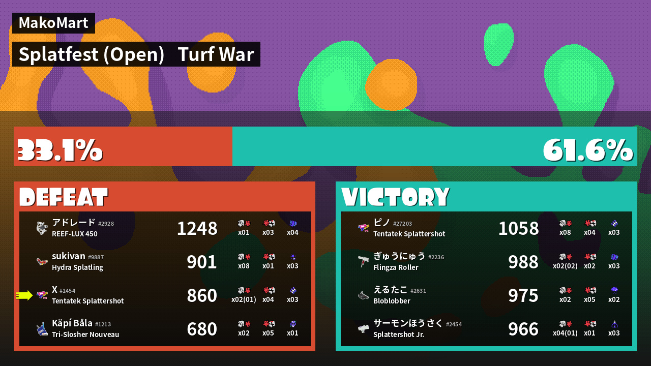 | Medals | #1 Enemy-Base Inker #1 Splat Assister #1 Ink Consumer | ||
