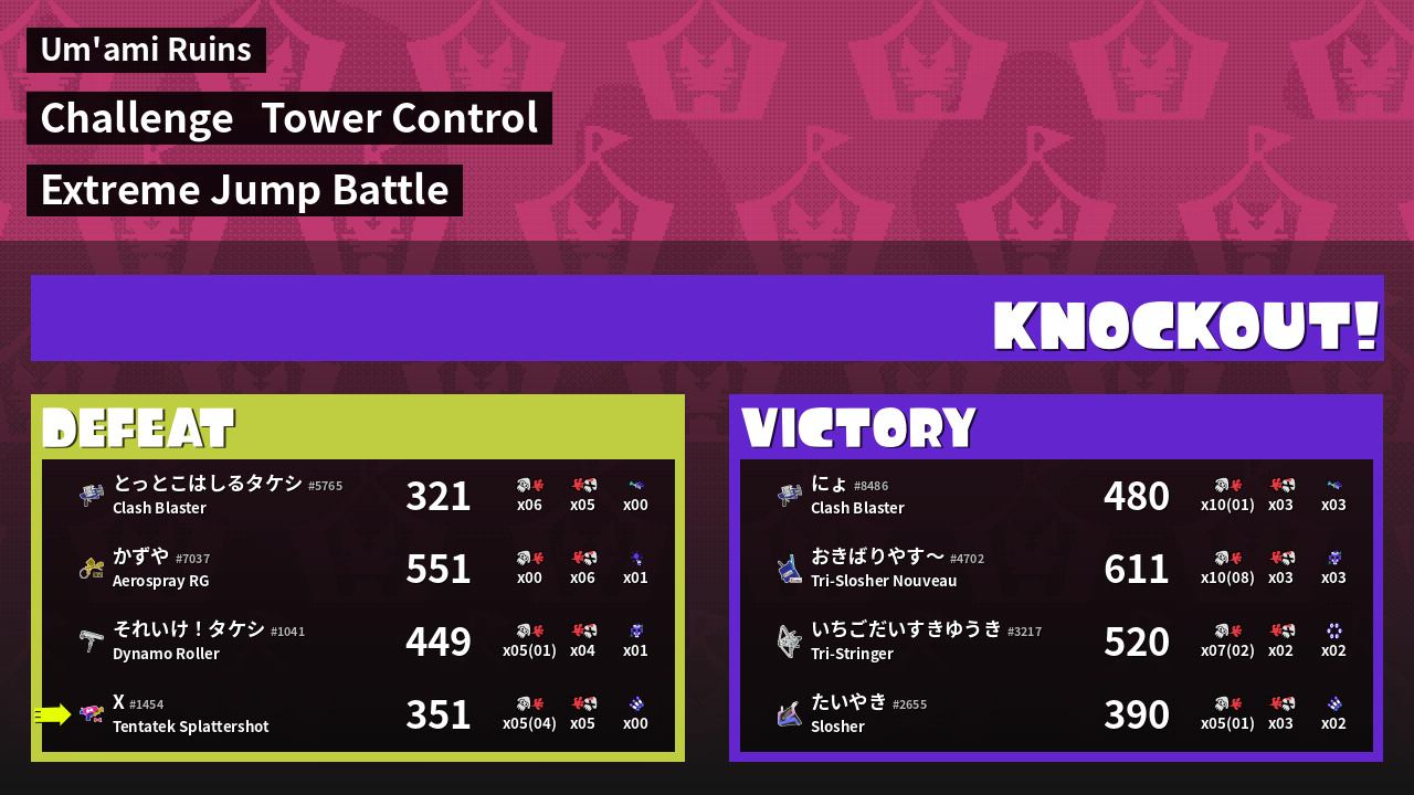 | Medals | #1 Splat Assister #1 Tower Stopper #1 Damage Taker | ||