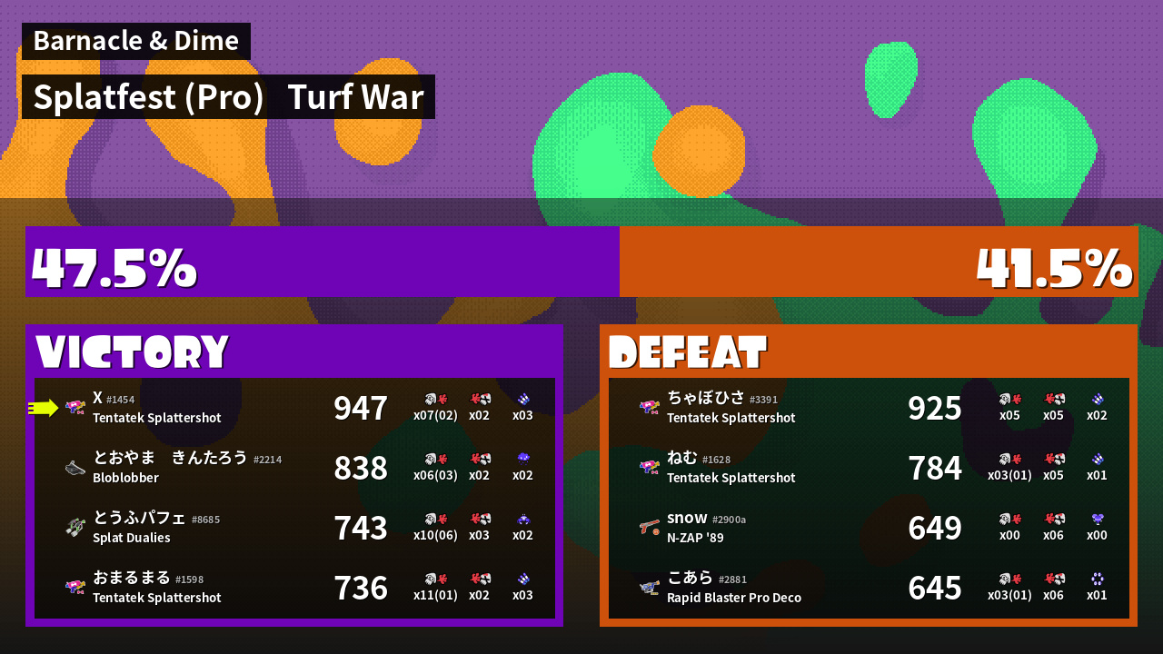 | Mode | Turf War - Splatfest (Pro) | ||