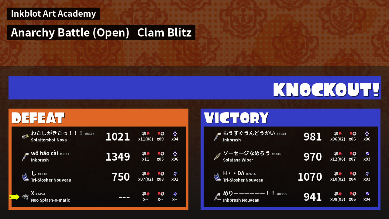 | Mode | Clam Blitz - Anarchy Battle (Open) | ||