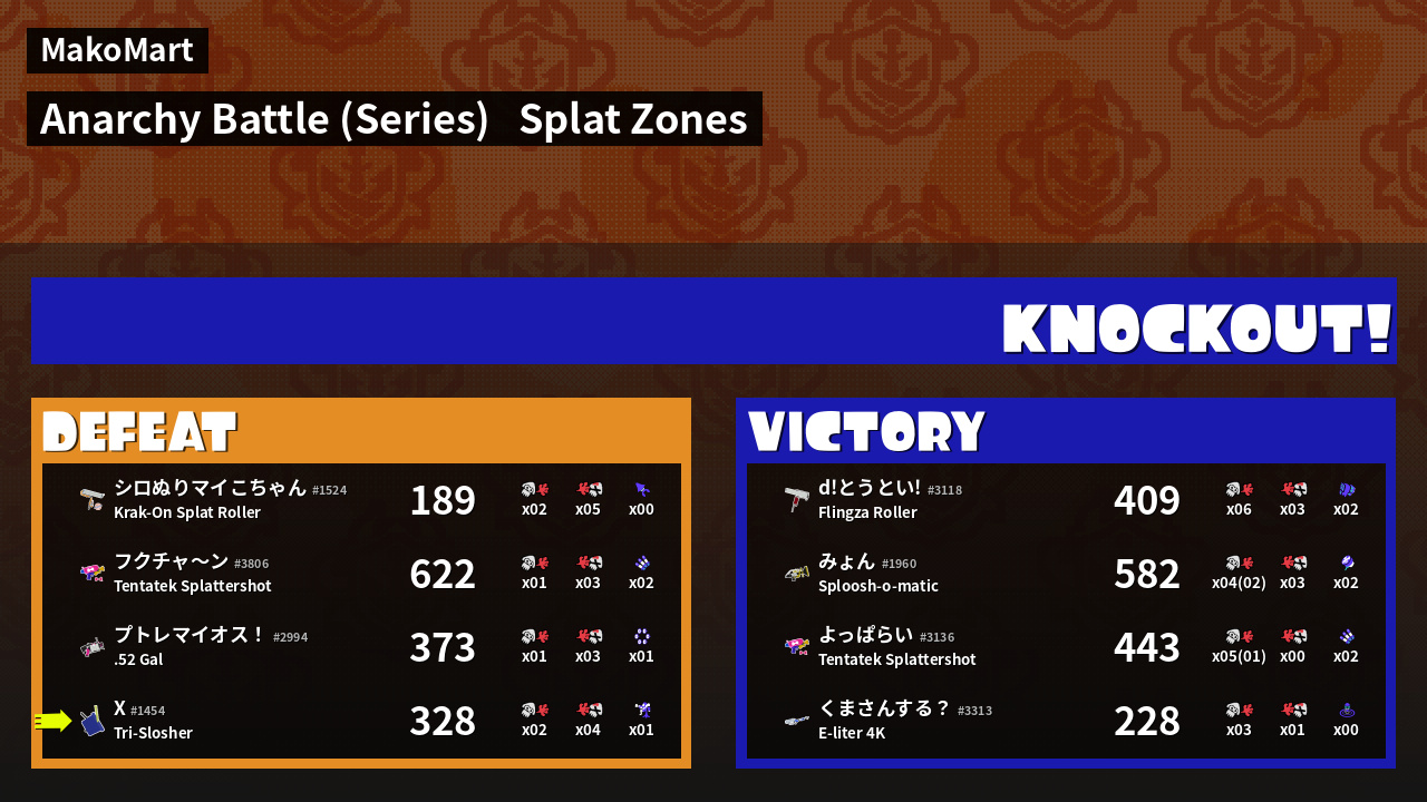 | Mode | Splat Zones - Anarchy Battle (Series) | ||