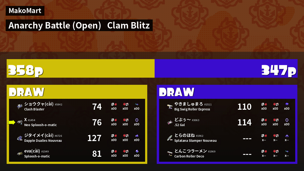 | Mode | Clam Blitz - Anarchy Battle (Open) | ||