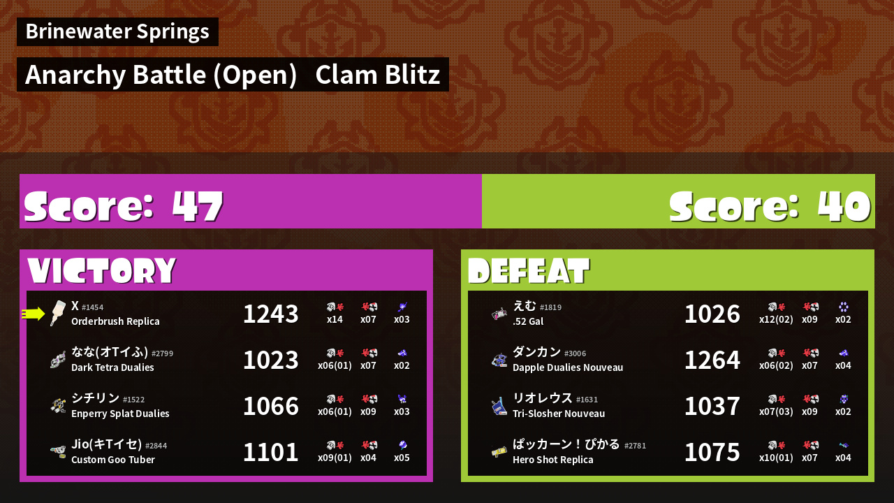 | Mode | Clam Blitz - Anarchy Battle (Open) | ||