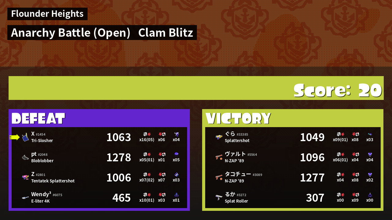 | Mode | Clam Blitz - Anarchy Battle (Open) | ||