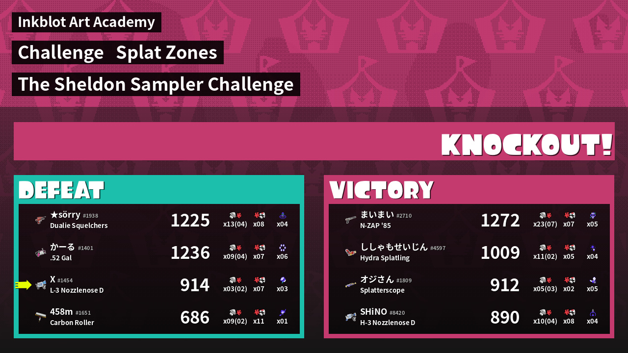 | Challenge | The Sheldon Sampler Challenge Make the most of random weapons! | ||