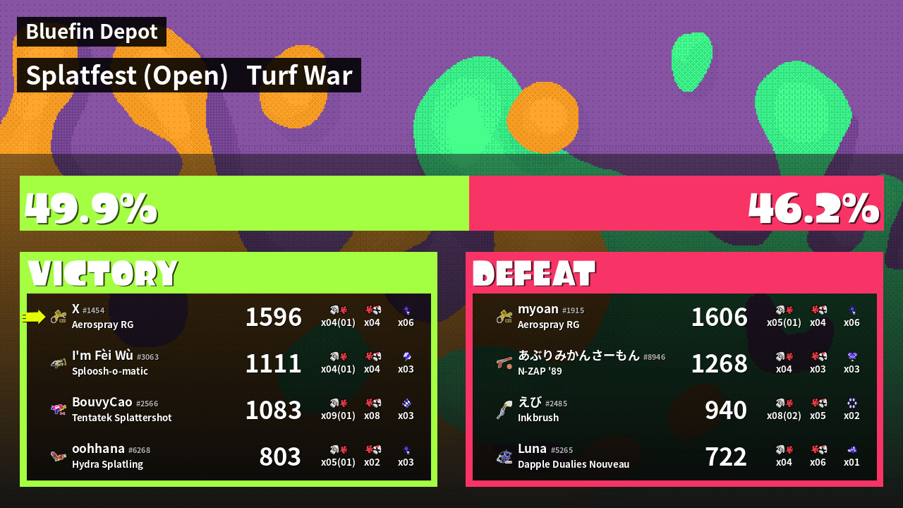 | Medals | #1 Turf Inker #1 Enemy-Base Inker #1 Splat Assister | ||