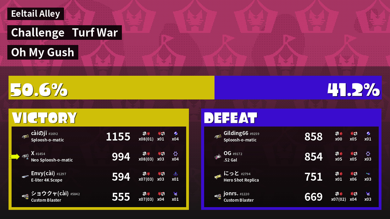 | Mode | Turf War - Challenge | ||