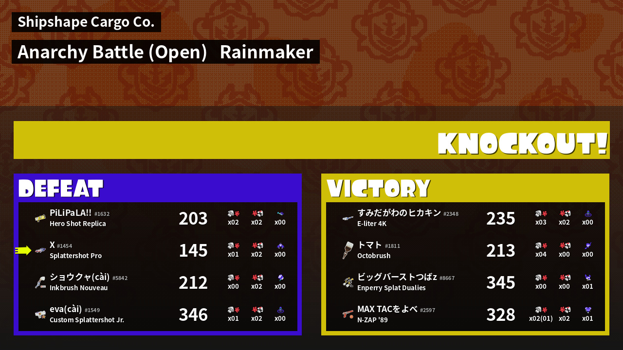 | Mode | Rainmaker - Anarchy Battle (Open) | ||