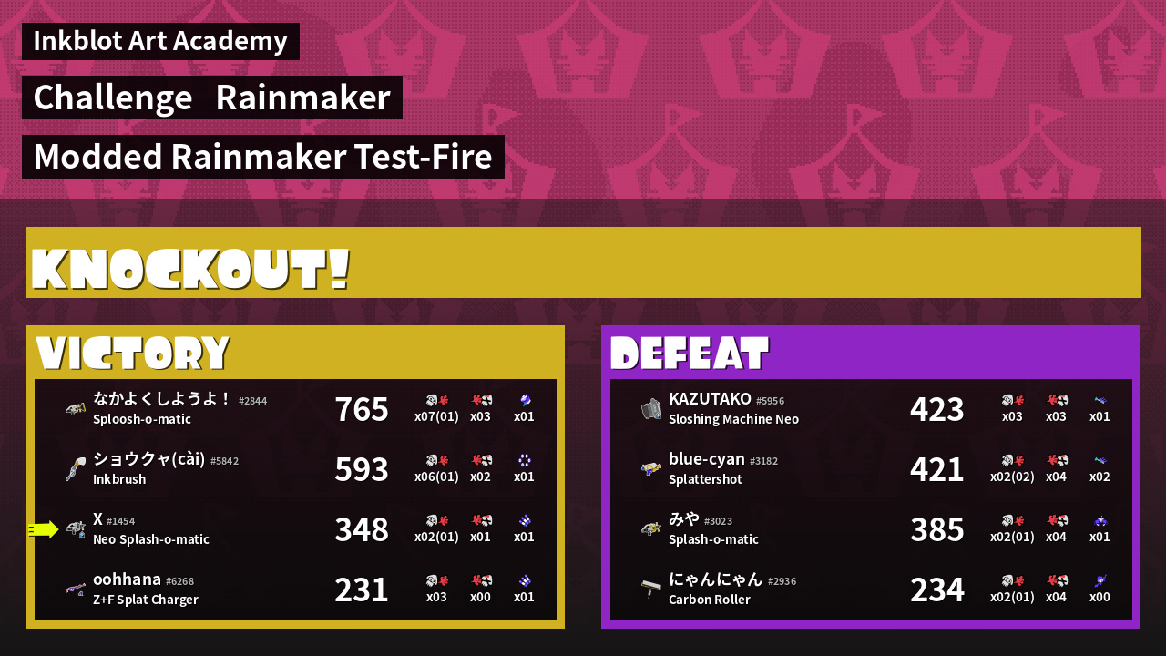 | Medals | #1 Splat Assister #1 Damage Taker #1 Ink Consumer | ||