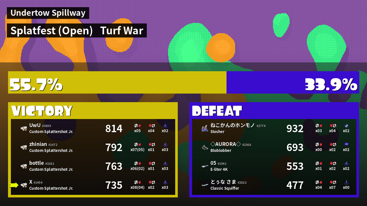 | Medals | #1 Overall Splatter #1 Popular Target #1 Enemy-Base Inker | ||