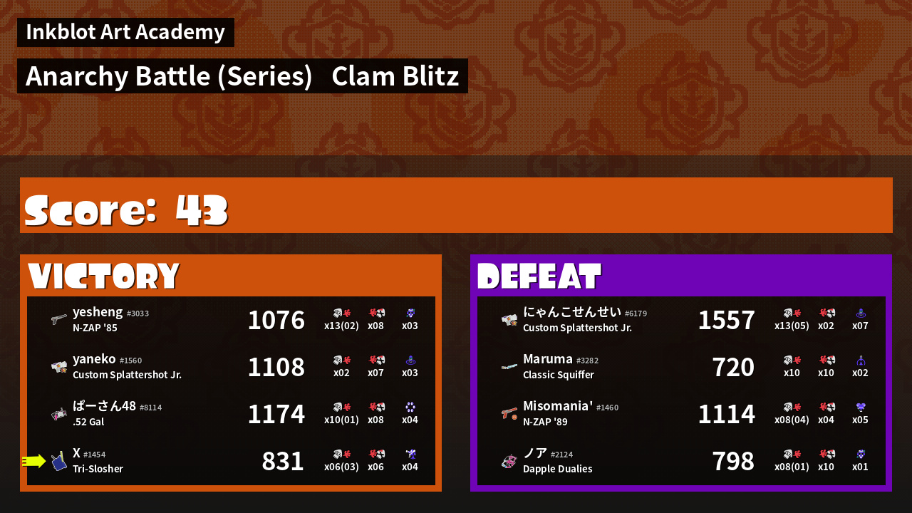 | Mode | Clam Blitz - Anarchy Battle (Series) | ||