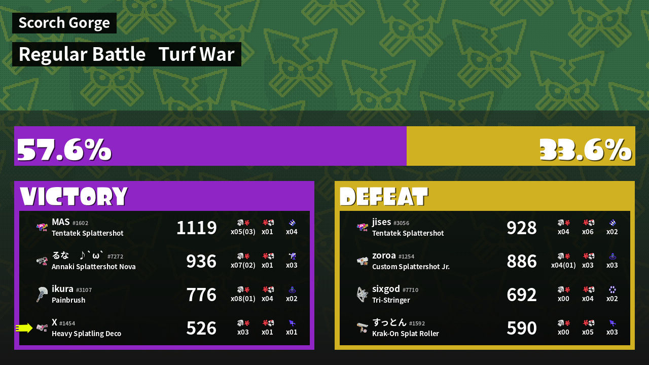 | Mode | Turf War - Regular Battle | ||