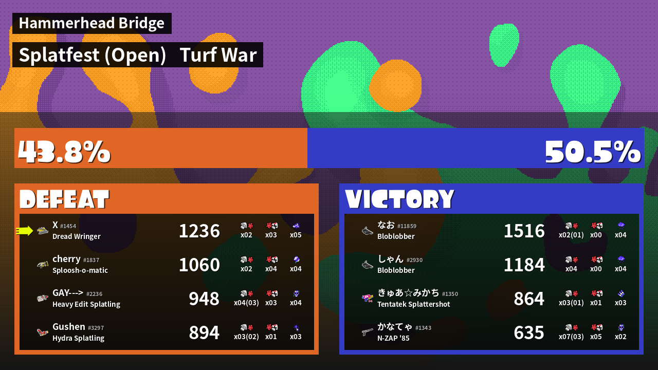 | Mode | Turf War - Splatfest (Open) | ||