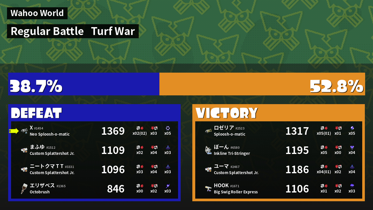 | Mode | Turf War - Regular Battle | ||