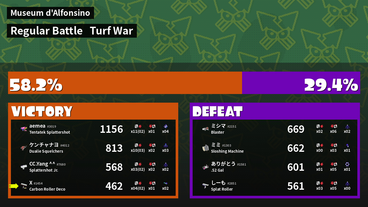 | Mode | Turf War - Regular Battle | ||