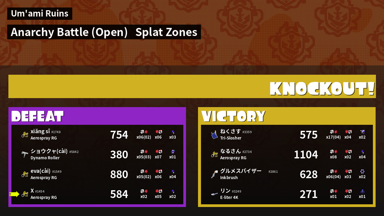 | Mode | Splat Zones - Anarchy Battle (Open) | ||