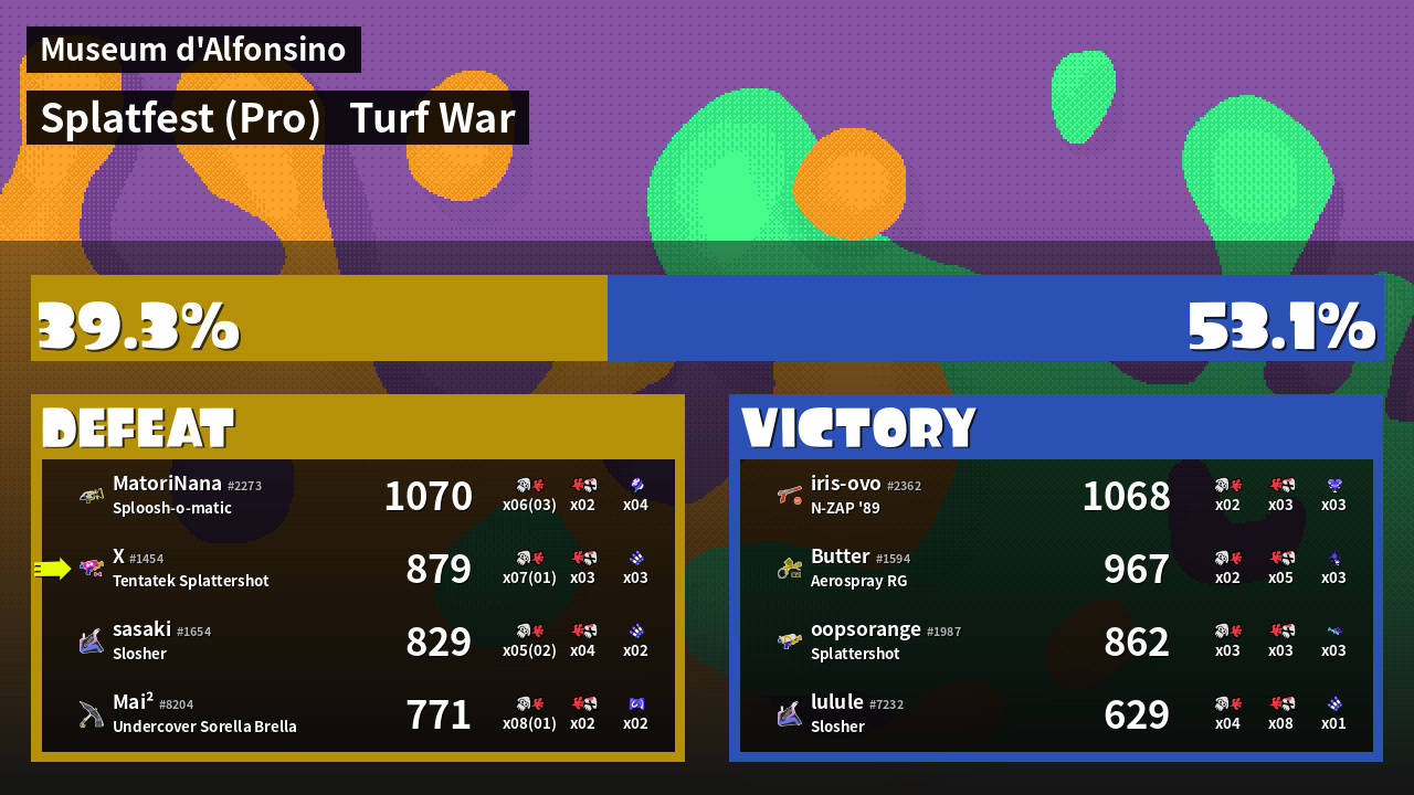 | Mode | Turf War - Splatfest (Pro) | ||