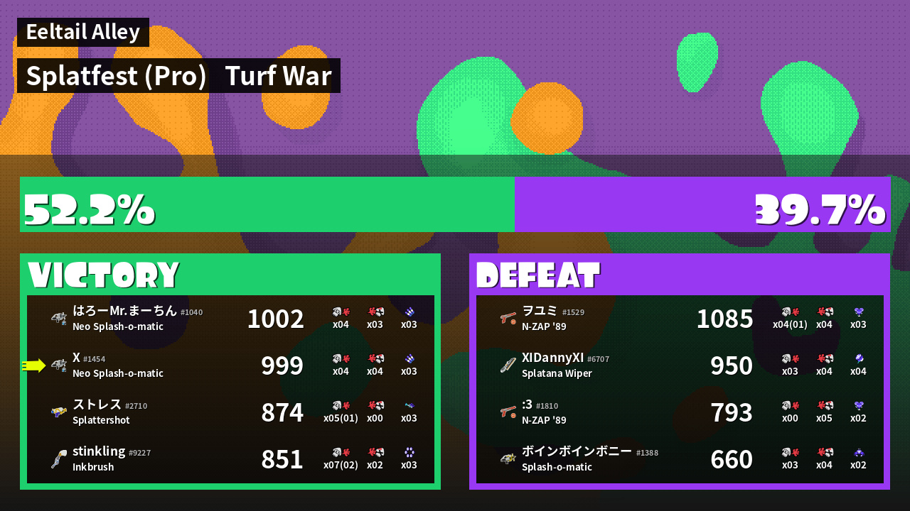 | Mode | Turf War - Splatfest (Pro) | ||