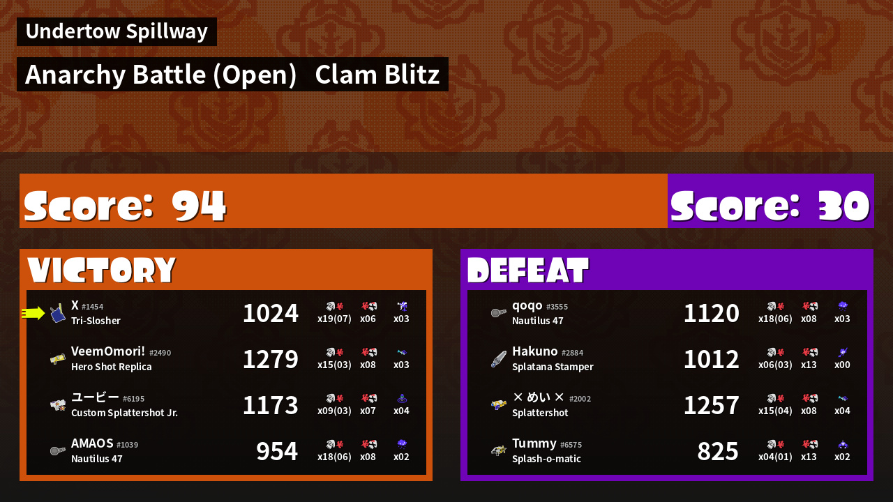 | Mode | Clam Blitz - Anarchy Battle (Open) | ||