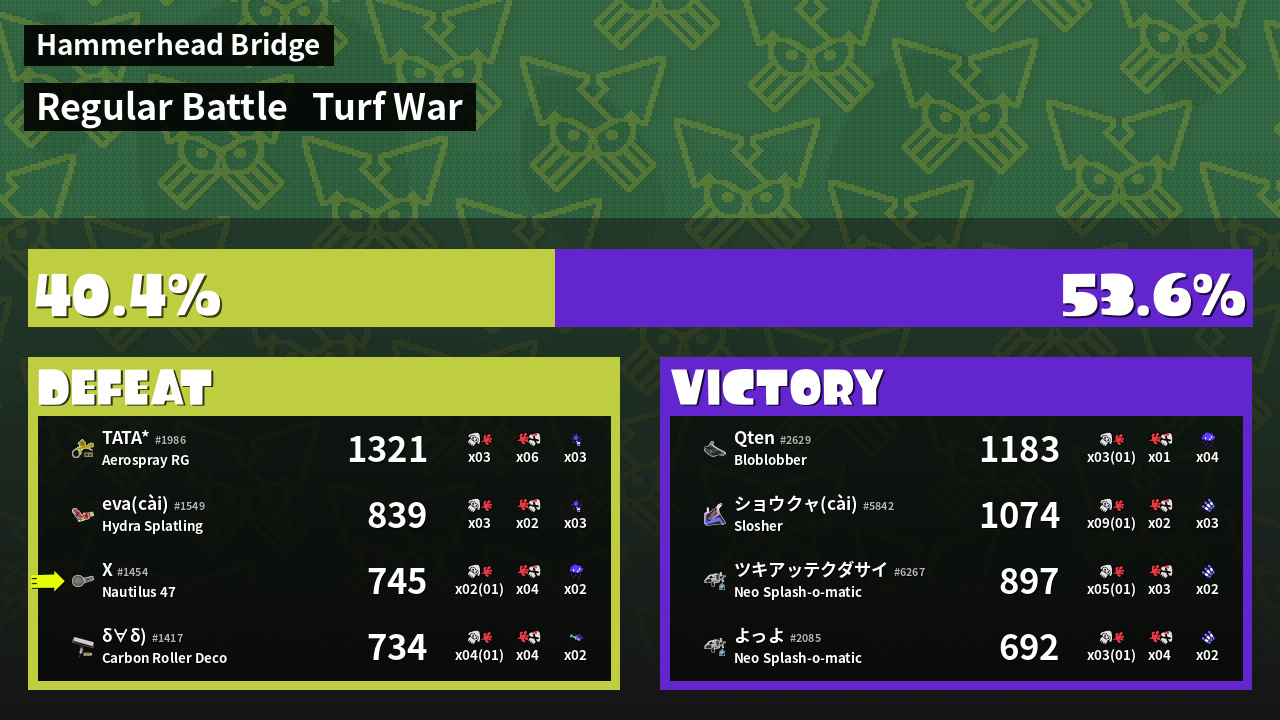 | Medals | #1 Splat Assister #1 Ink Storm User #2 Enemy-Base Inker | ||