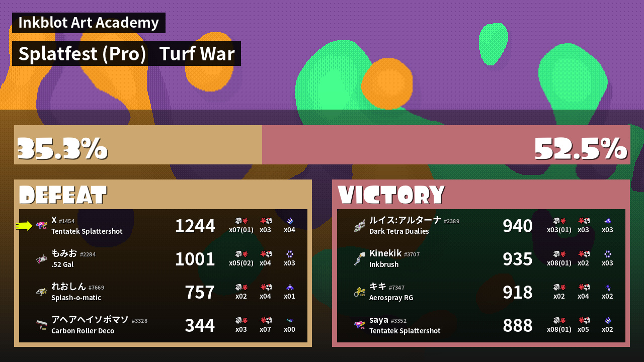 | Mode | Turf War - Splatfest (Pro) | ||
