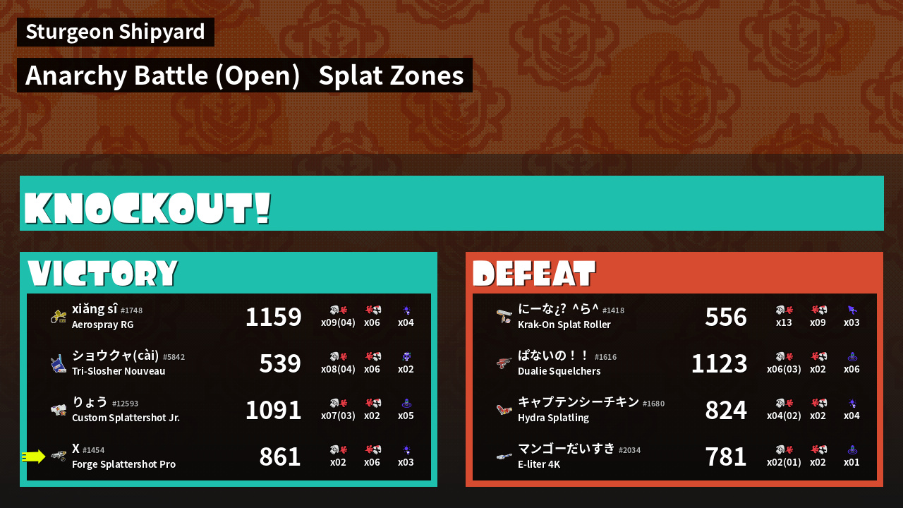 | Mode | Splat Zones - Anarchy Battle (Open) | ||