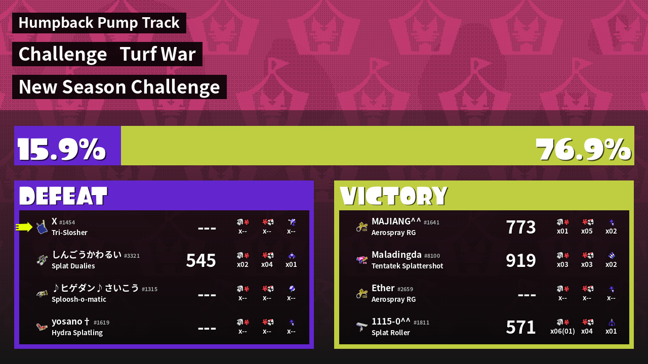 | Mode | Turf War - Challenge | ||