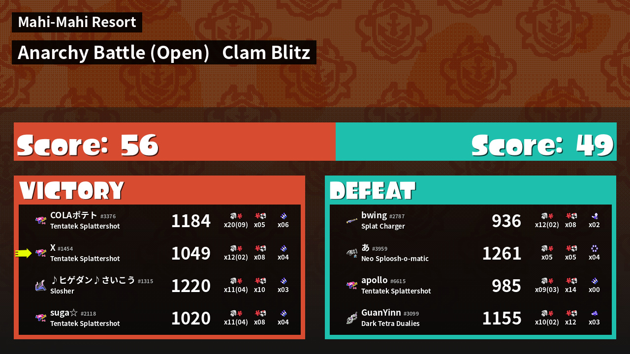 | Mode | Clam Blitz - Anarchy Battle (Open) | ||