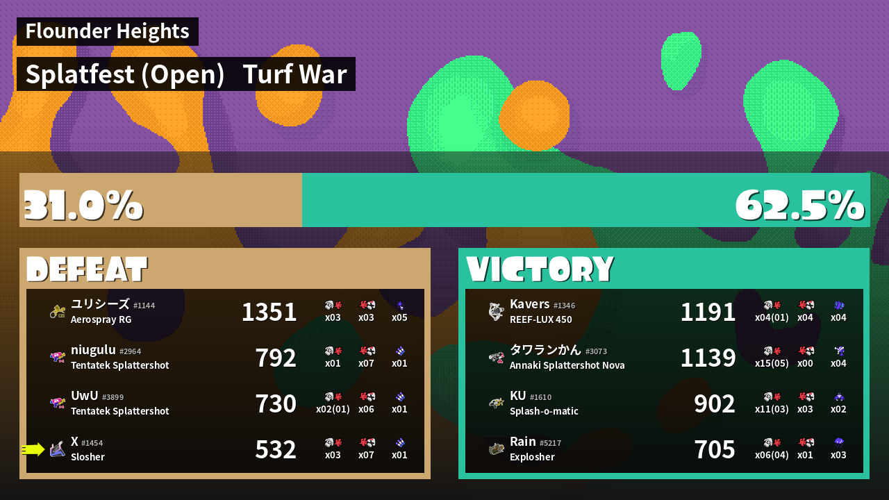 | Medals | #1 Overall Splatter #1 Popular Target #1 Enemy Splatter | ||