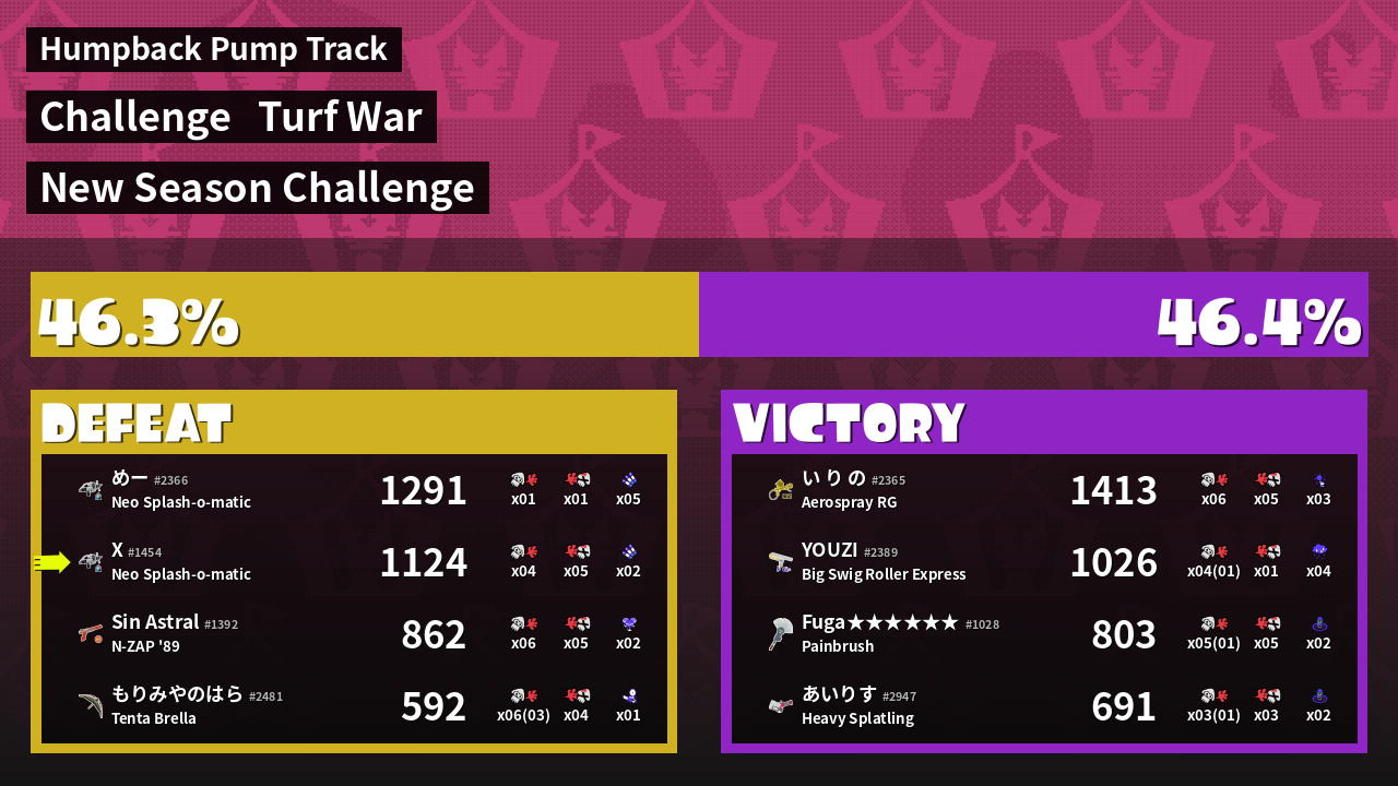 | Medals | #1 Enemy-Base Inker #1 Damage Taker #2 Turf Inker | ||