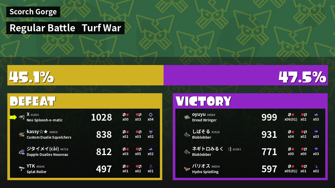 | Medals | #1 Turf Inker #1 Enemy-Base Inker #1 Damage Taker | ||