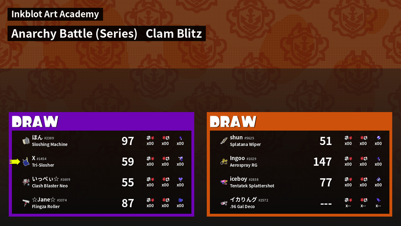 | Mode | Clam Blitz - Anarchy Battle (Series) | ||