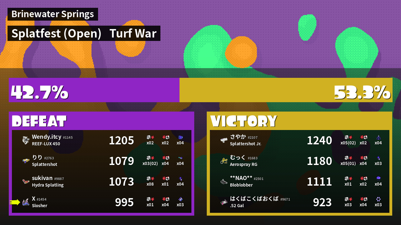 | Weapon | Slosher ( Splat Bomb / Triple Inkstrike) | ||