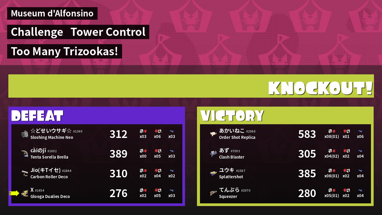 | Medals | #1 Trizooka User #2 Overall Splatter #2 Popular Target | ||