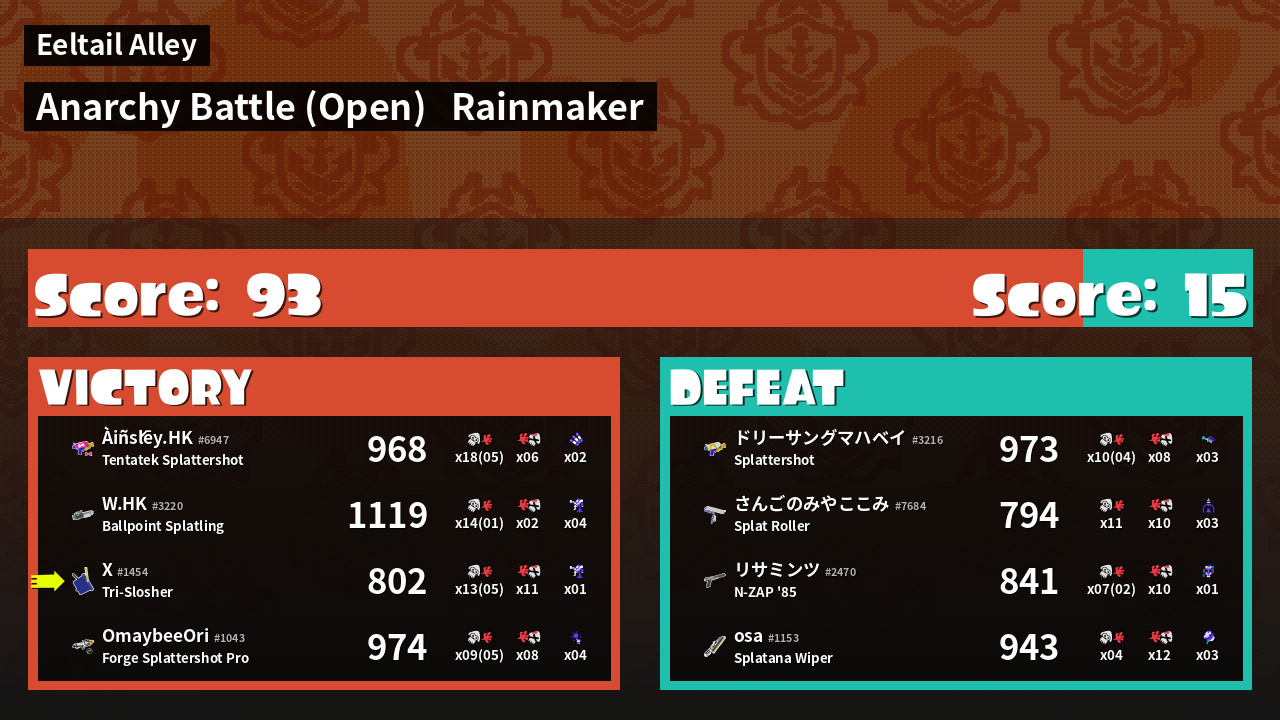 | Mode | Rainmaker - Anarchy Battle (Open) | ||