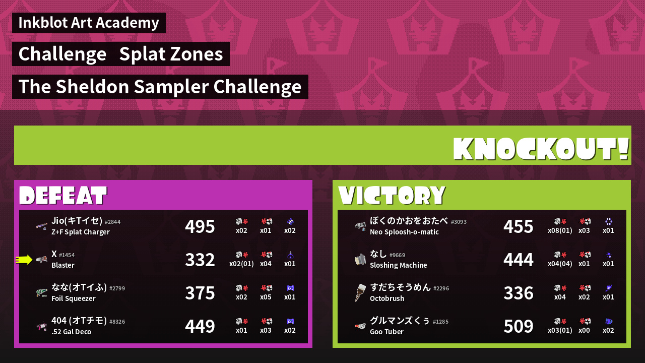 | Medals | #1 Overall Splatter #1 Popular Target #1 Splat Assister | ||
