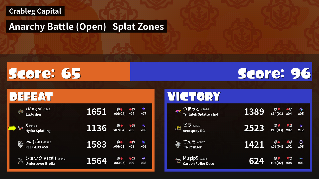 | Mode | Splat Zones - Anarchy Battle (Open) | ||