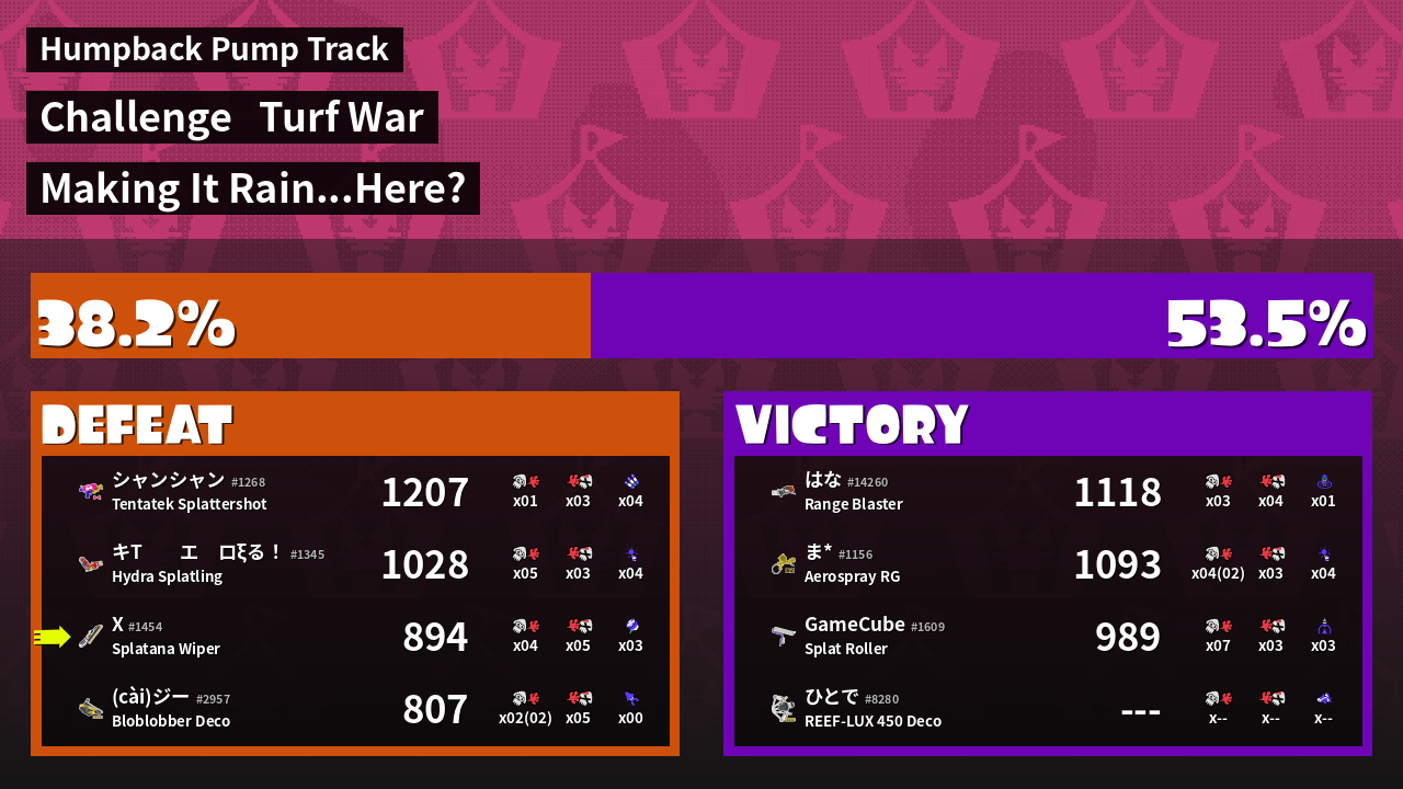 | Mode | Turf War - Challenge | ||