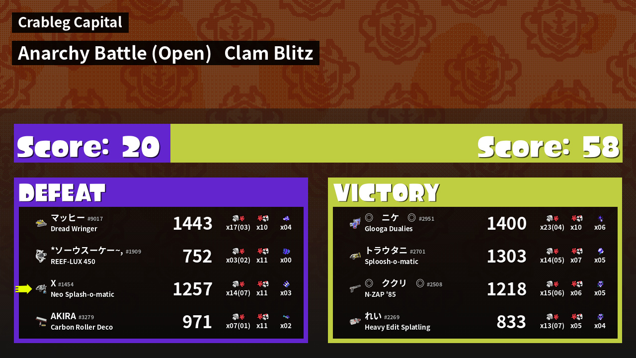 | Mode | Clam Blitz - Anarchy Battle (Open) | ||