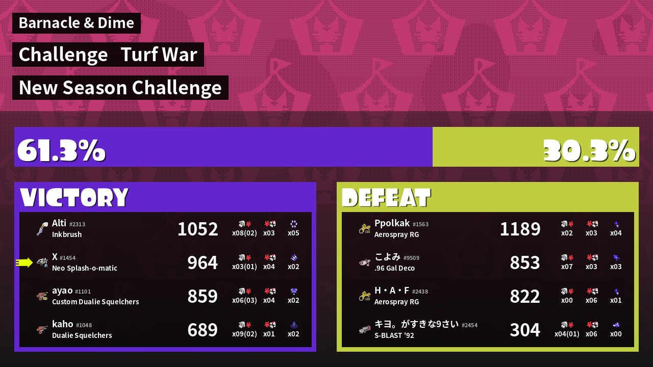 | Mode | Turf War - Challenge | ||