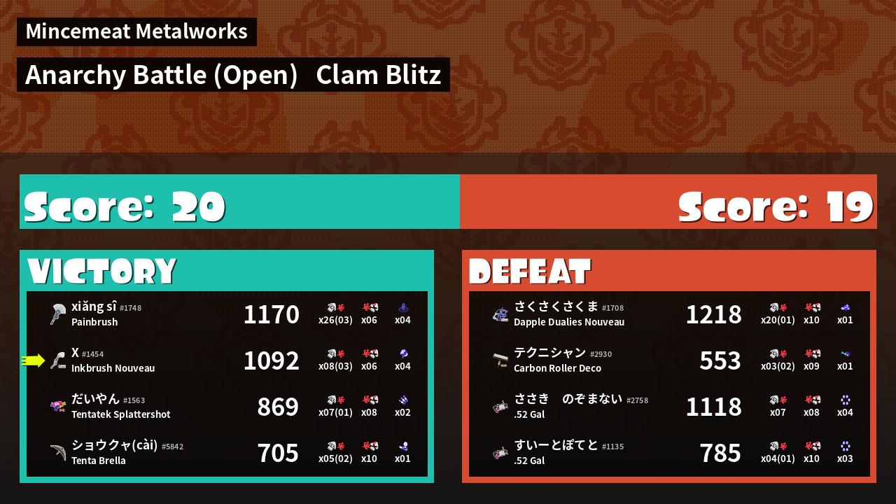 | Mode | Clam Blitz - Anarchy Battle (Open) | ||