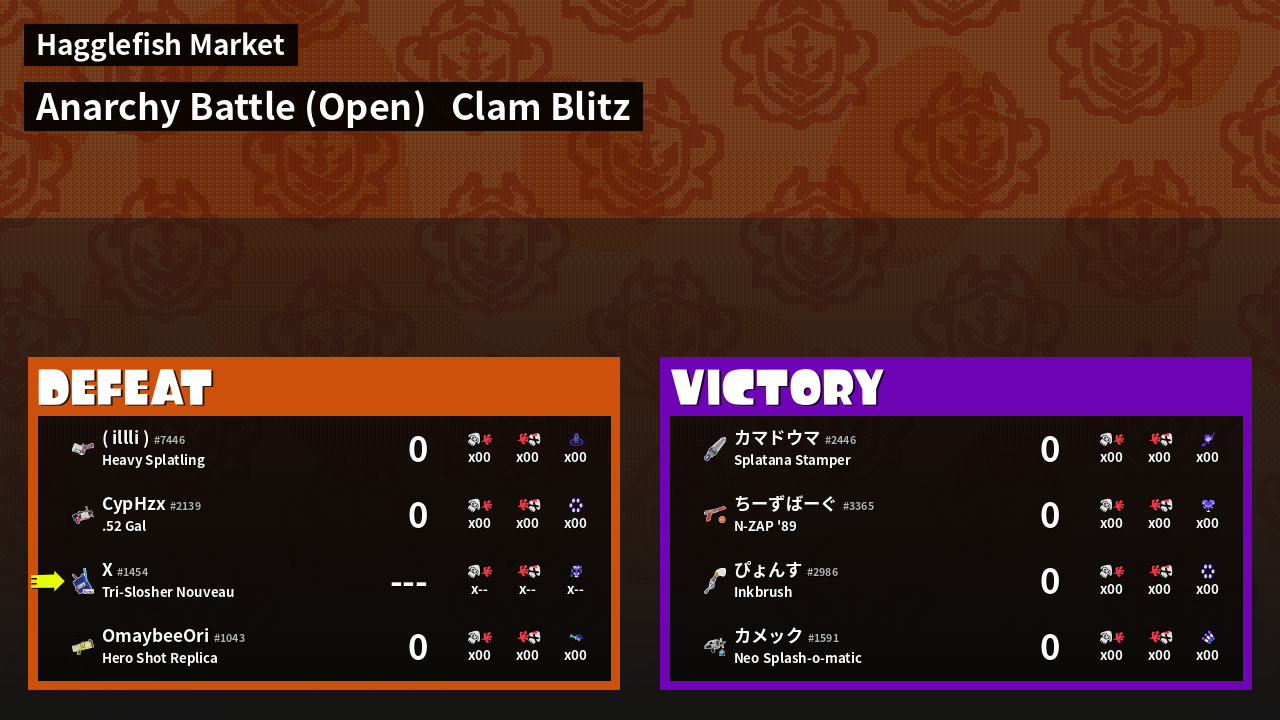 | Mode | Clam Blitz - Anarchy Battle (Open) | ||
