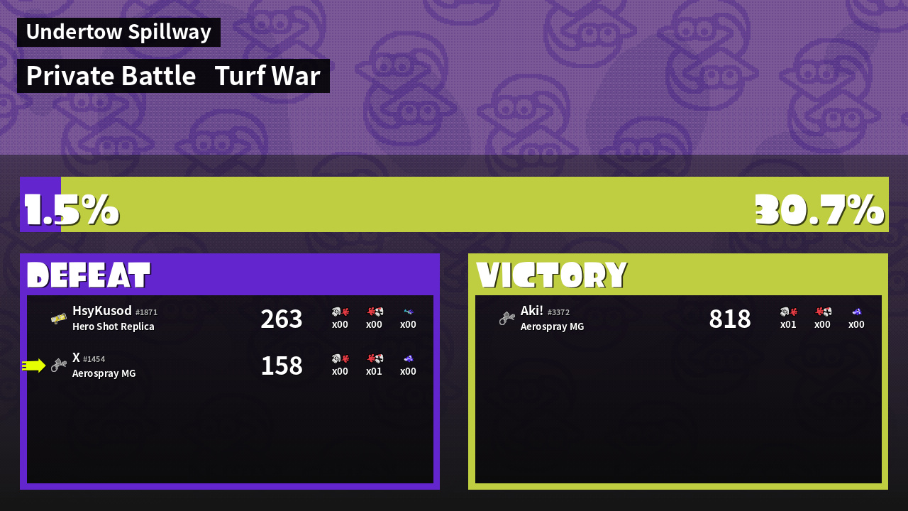| Mode | Turf War - Private Battle | ||