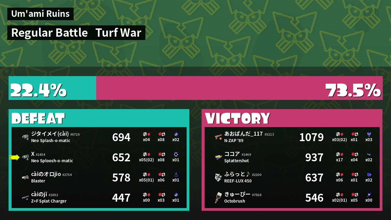 | Mode | Turf War - Regular Battle | ||