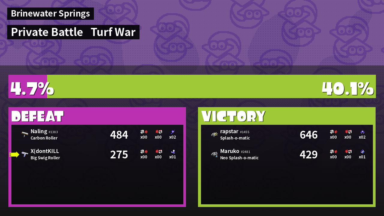 | Mode | Turf War - Private Battle | ||