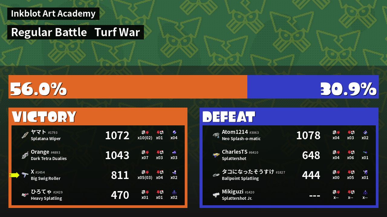 | Medals | #1 Splat Assister #2 Popular Target #2 Home-Base Inker | ||