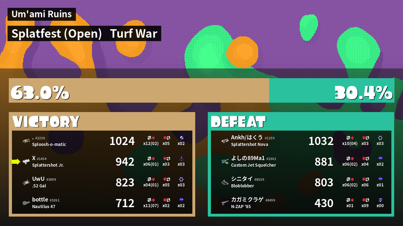 | Medals | #1 Enemy-Base Inker #1 Super Jump Spot #1 Ink Consumer | ||