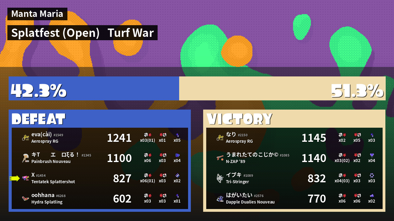 | Medals | #1 Overall Splatter #1 Popular Target #1 Splat Assister | ||